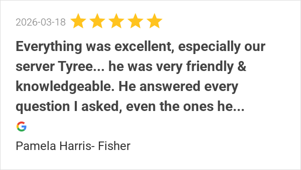 Everything was excellent, especially our server Tyree... he...