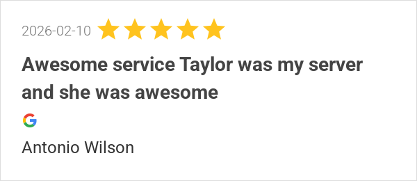 Awesome service Taylor was my server and she was awesome