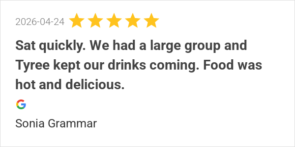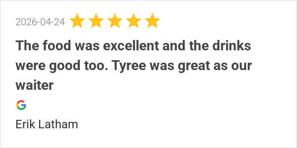 Food was great! Our server Sammy was excellent also. Will be...