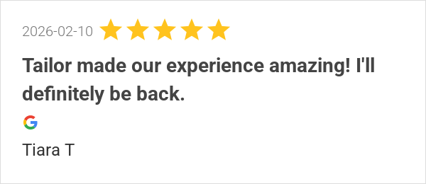 Tailor made our experience amazing! I'll definitely be back.
