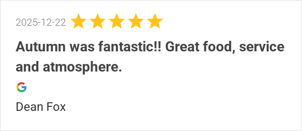 Autumn was fantastic!! Great food, service and atmosphere.