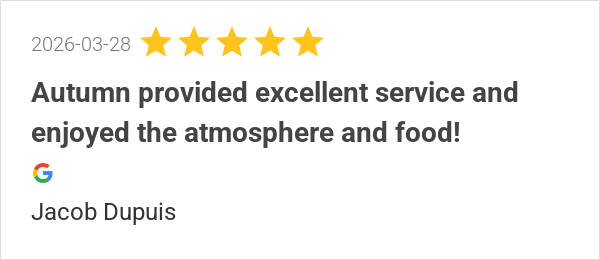 Autumn provided excellent service and enjoyed the atmosphere...