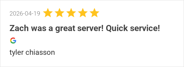 Zach was a wonderful waiter and gave awesome service!