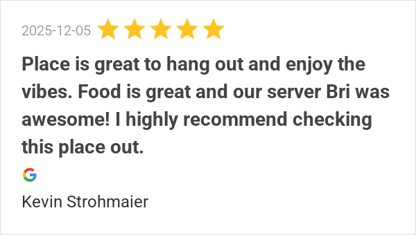 Place is great to hang out and enjoy the vibes. Food is grea...