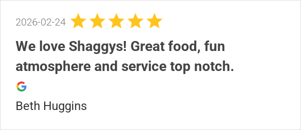 We love Shaggys! Great food, fun atmosphere and service top ...