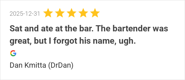 Sat and ate at the bar. The bartender was great, but I forgo...