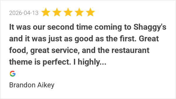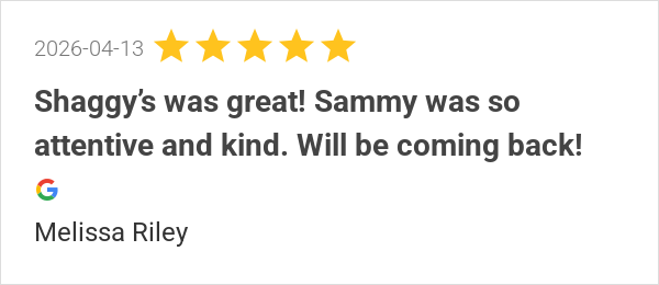Shaggy’s was great! Sammy was so attentive and kind. Will be...