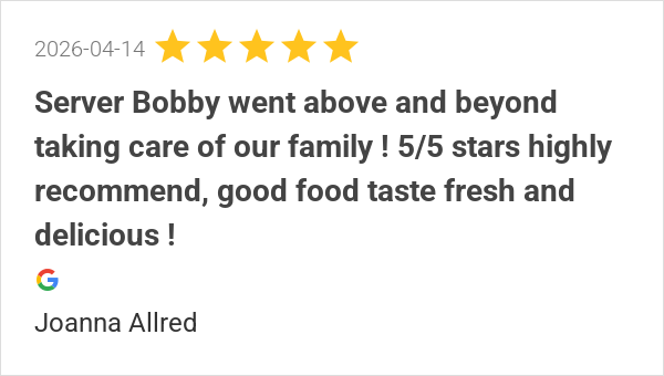 Service was Awesome! Bobby B by far is a great waiter! My hu...