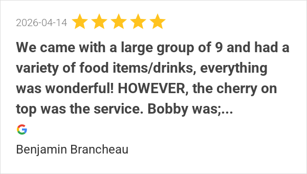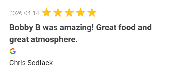 Bobby B was amazing! Great food and great atmosphere.