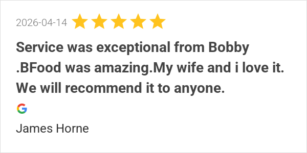 Service was exceptional from Bobby .BFood was amazing.My wif...