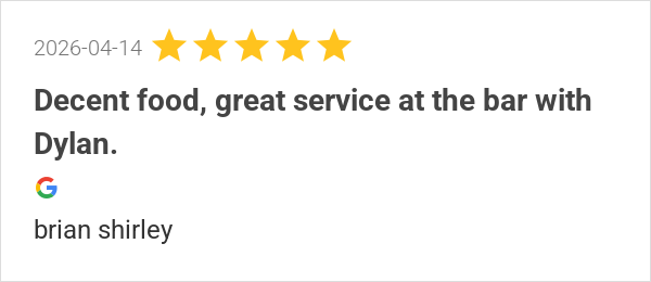 Decent food, great service at the bar with Dylan.