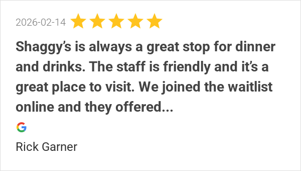 Shaggy’s is always a great stop for dinner and drinks. The s...