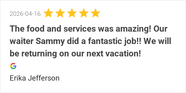 The food and services was amazing! Our waiter Sammy did a fa...