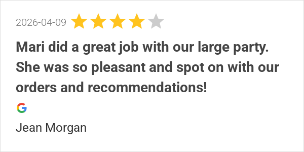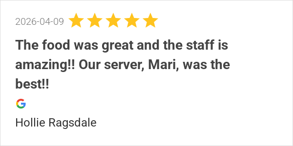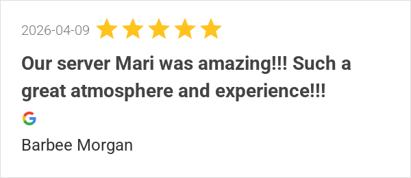 Our server Mari was amazing!!! Such a great atmosphere and e...
