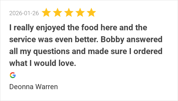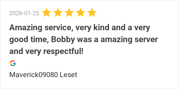 Bobby was 💯Food was good and hotRecommend