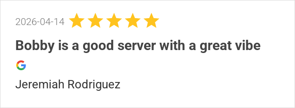 Bobby is a good server with a great vibe
