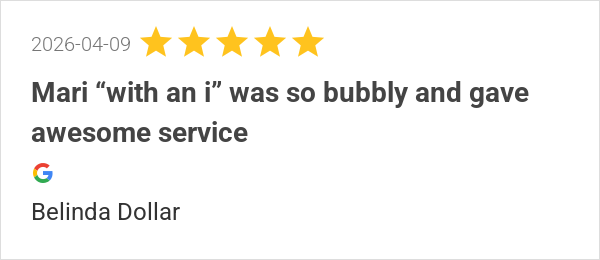 Mari “with an i” 😁 was so bubbly and gave awesome service