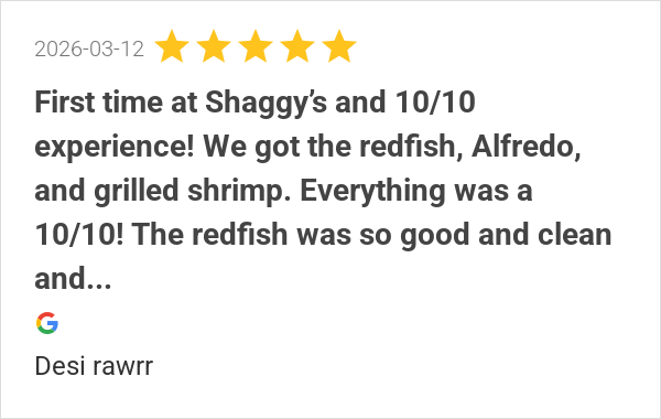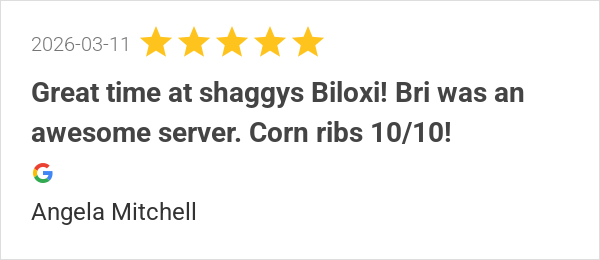 Great time at shaggys Biloxi! Bri was an awesome server. Cor...