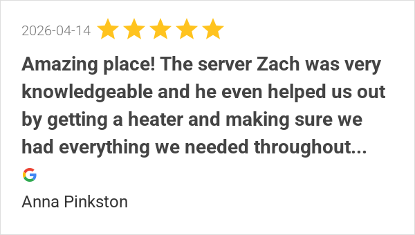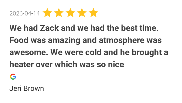 Food was amazing and atmosphere was awesome. We were cold an...