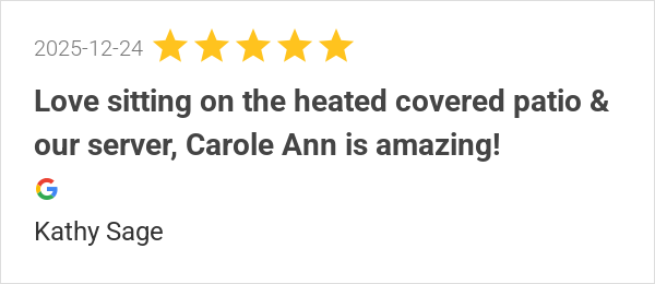 Love sitting on the heated covered patio & our server, C...