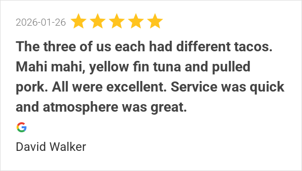 All were excellent. Service was quick and atmosphere was gre...