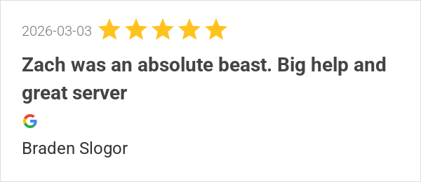 Zach was an absolute beast. Big help and great server