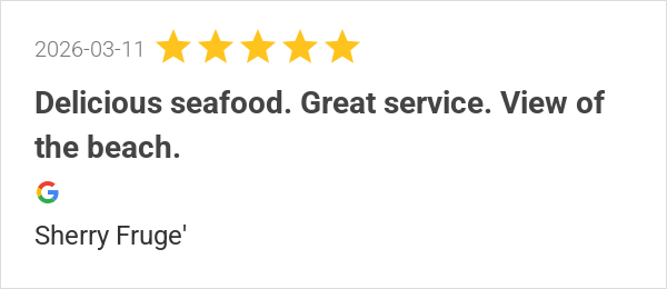 Delicious seafood. Great service. View of the beach.