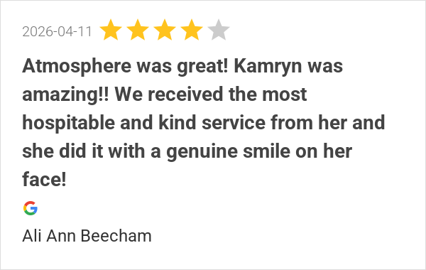 Atmosphere was great! Kamryn was amazing!!