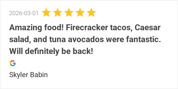 Amazing food! Firecracker tacos, Caesar salad, and tuna avoc...