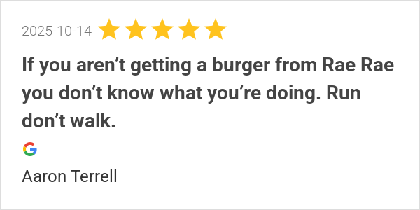 If you aren’t getting a burger from Rae Rae you don’t know w...