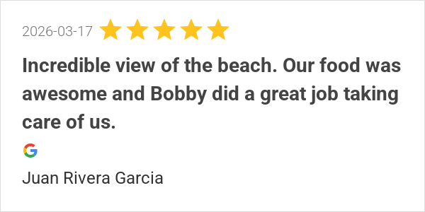 Incredible view of the beach. Our food was awesome and Bobby...