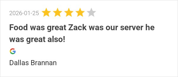 Food was great Zack was our server he was great also!