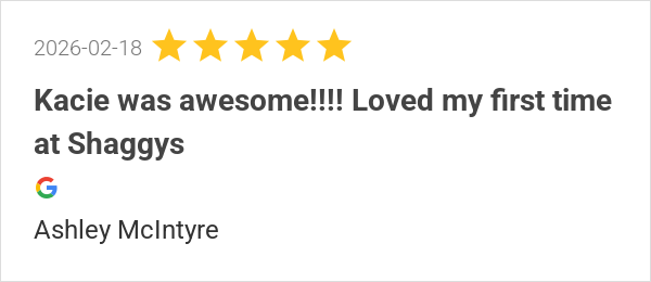 Kacie was awesome!!!! Loved my first time at Shaggys