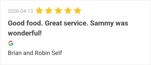 Good food. Great service. Sammy was wonderful!
