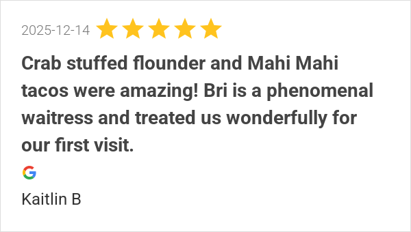 Crab stuffed flounder and Mahi Mahi tacos were amazing! Bri ...