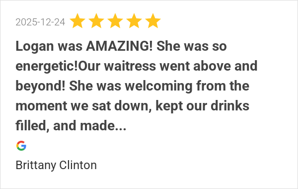 Logan was AMAZING! She was so energetic!Our waitress went ab...