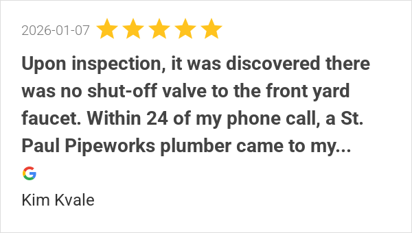 St. Paul Pipeworks has covered all my plumbing needs for yea...