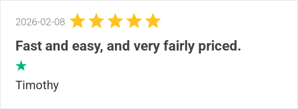 Fast and easy, and very fairly priced.