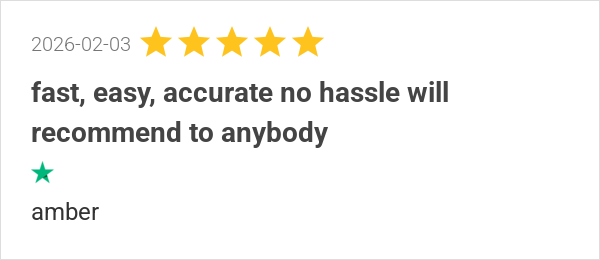 fast, easy, accurate no hassle will recommend to anybody