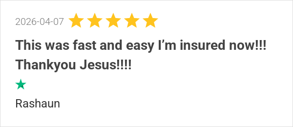 This was fast and easy I’m insured now!!! Thankyou Jesus!!!!