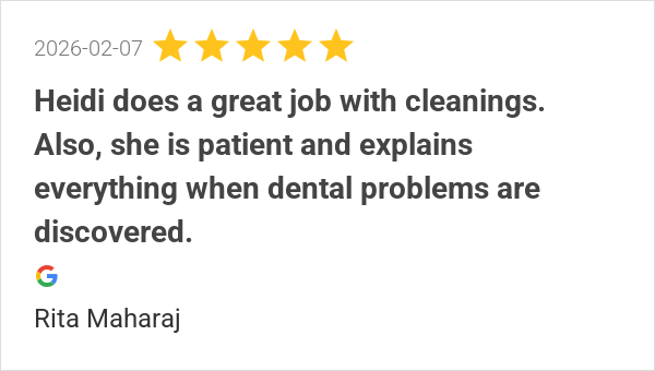 Heidi does a great job with cleanings. Also, she is patient ...